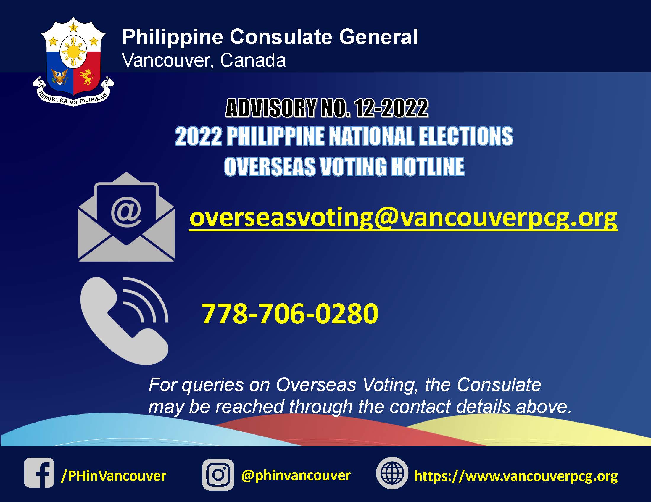 Advisory No 12 2022 2022 Philippine National Elections Overseas Voting Hotline Vancouver Philippines Consulate General